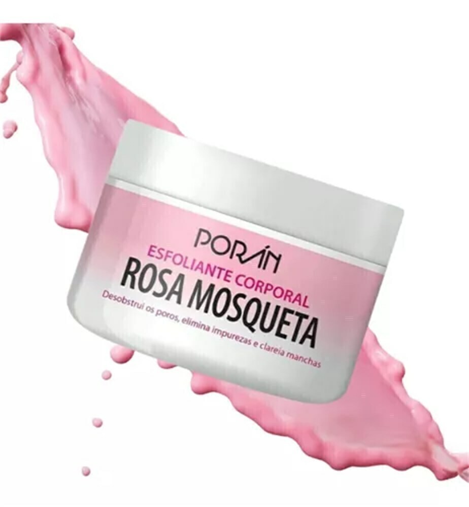 O Esfoliante Corporal Rosa Mosqueta Porán promove renovação celular, rico em ômega 6 e 9 estimula o colágeno, desobstrui poros, elimina as impurezas, clareia marcas e manchas indesejadas. Excelente para evitar acnes, cravos e foliculites.