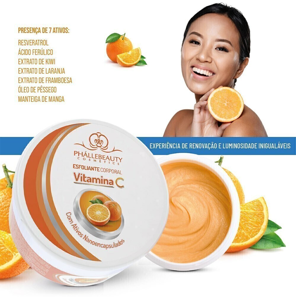 Modo de Usar: Com a pele molhada aplique o produto e massageie suavemente em movimentos circulares e ascendentes, concentre nas áreas mais ressecadas [costas, calcanhares e cotovelos]e enxágue bem. Para melhor resultado. use o Esfoliante corporal Vitamina C até 3 vezes por semana. Não aplicar no rosto.