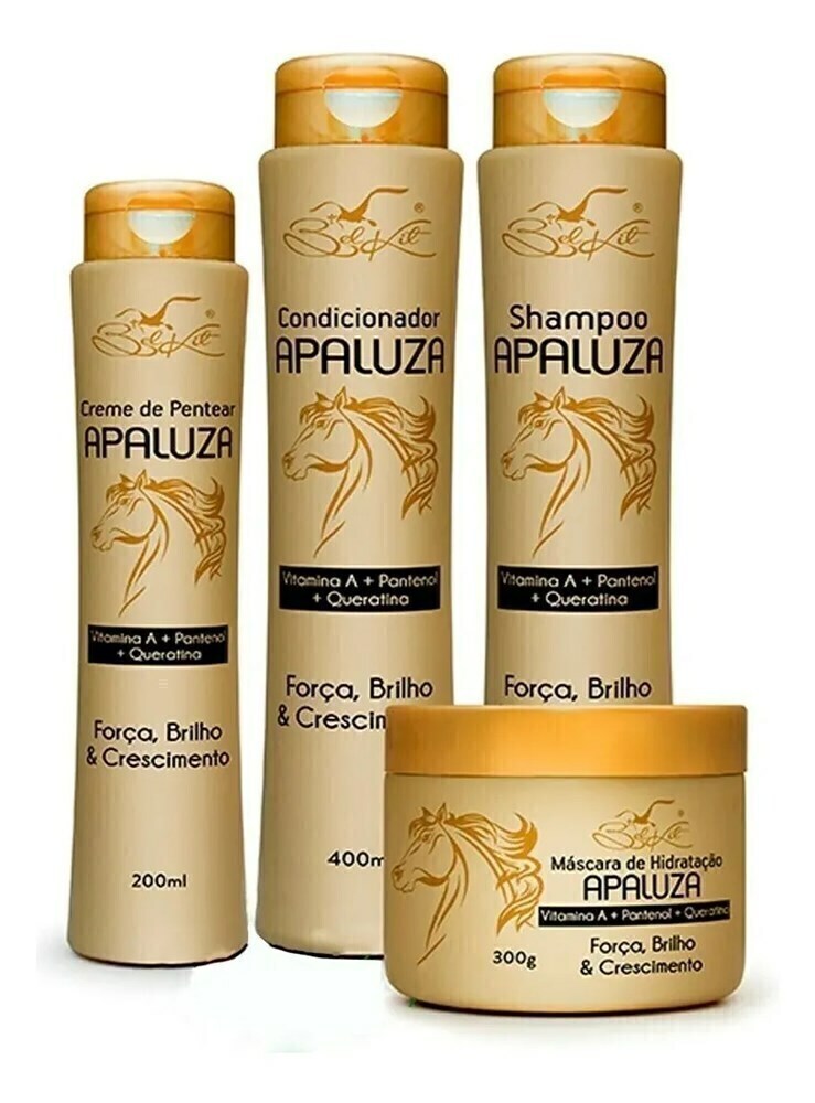Shampoo Apaluza - 400ml O Shampoo Apaluza Belkit possui uma fórmula balanceada com tensoativos suaves associados á vitamina A,D-Pantenol e a Queratina que remove as sujidades da fibra capilar, conferindo força, reparação brilho intenso aos fios. Modo de usar: Aplique o produto nos cabelos úmidos massageando suavemente com a ponta dos dedos o couro cabeludo até formar espuma. Enxague em seguida.