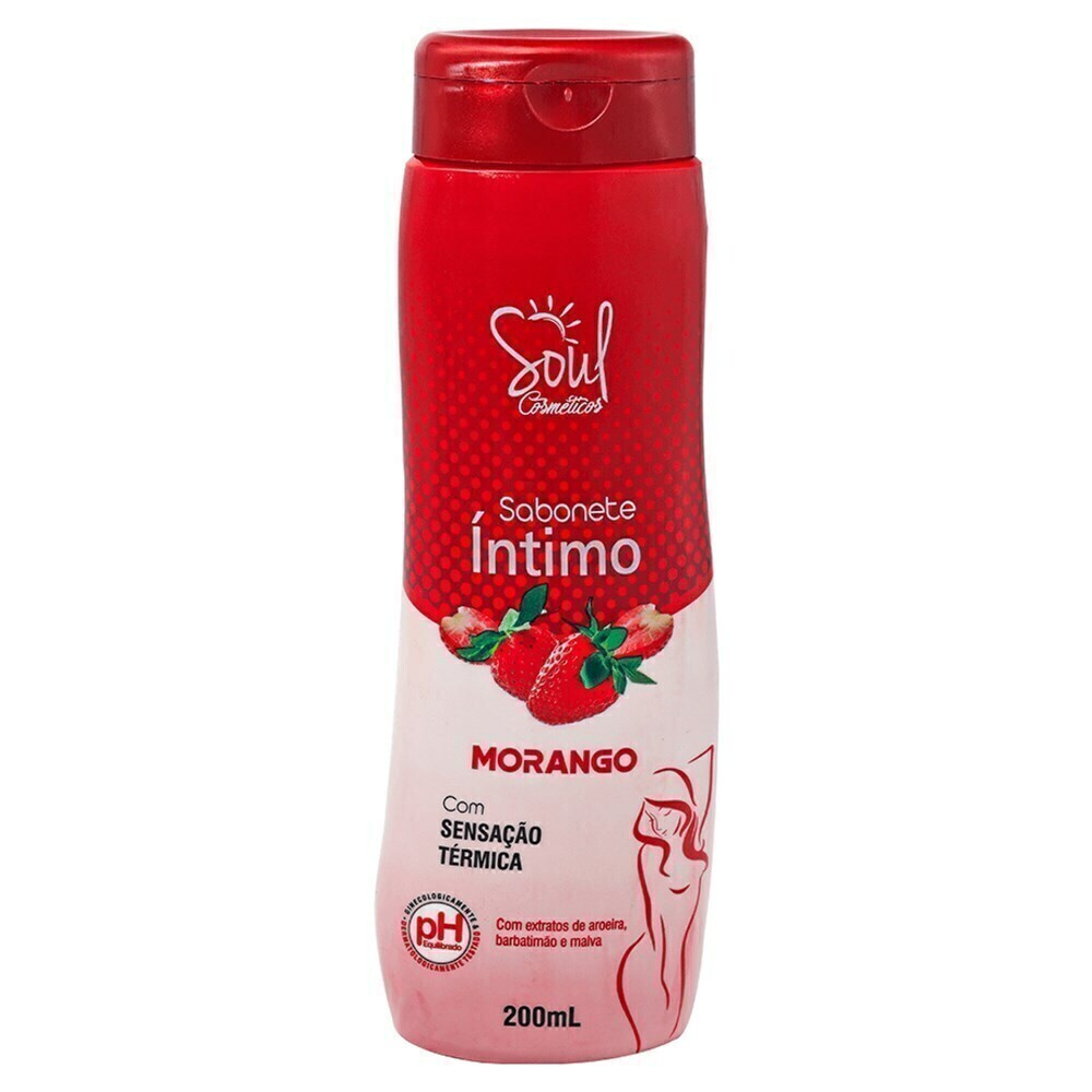 Sabonete Intimo Feminino Morango 210ml Soul (Aquecimento Térmico) Sabonete líquido desenvolvido especialmente para a higiene feminina. Sua fórmula é suave e delicada com sensação de esfriamento e com a presença de fragrâncias especiais. Modo de usar: Aplique o produto em pequena quantidade sobre a pele, massageie com uma esponja ou com as mãos até obter abundante espuma, espalhe pelo corpo e enxágue em seguida.