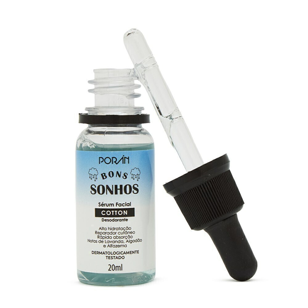 O Sérum Facial Bons Sonhos Cotton Porán é a escolha ideal para quem busca hidratação profunda e frescor para a pele do rosto. Sua fórmula foi especialmente desenvolvida para proporcionar nutrição e regeneração intensas, enquanto mantém a pele suave e revitalizada. Com notas delicadas de lavanda, algodão doce e alfazema, este sérum oferece uma experiência sensorial envolvente e tranquilizante, deixando a pele hidratada e protegida ao longo do dia.