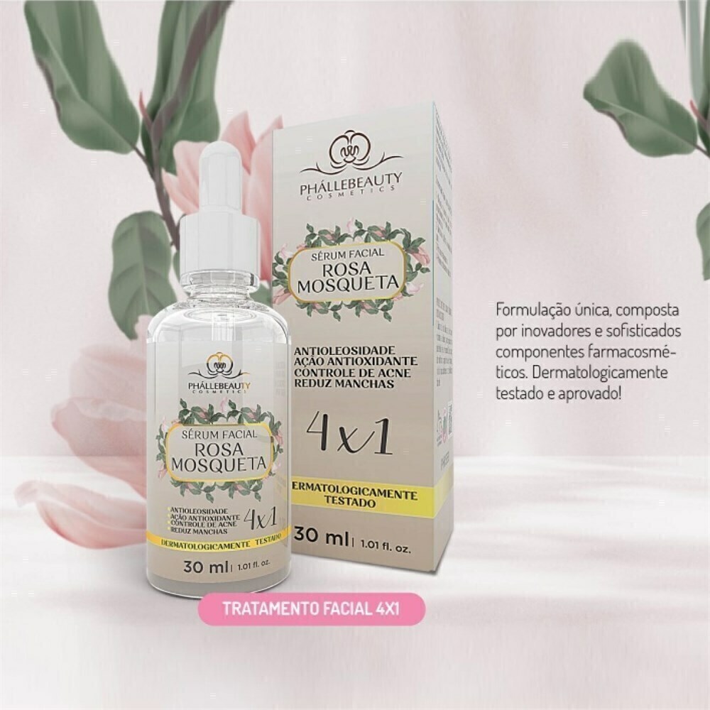 O Sérum de Rosa Mosqueta é rico em vitaminas e ácidos graxos gerando na pele efeito rejuvenescedor. Ele é capaz de melhorar a aparência de manchas, linhas finas, cicatrizes e potencializador da pele